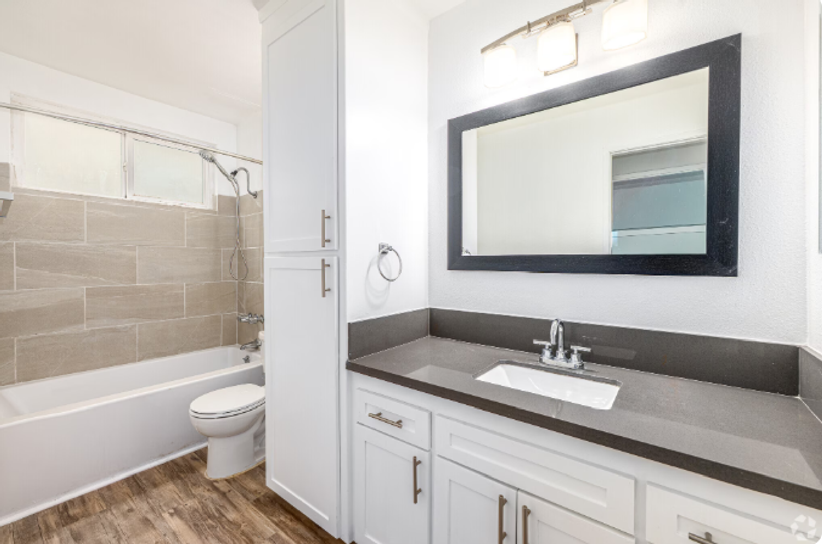 **New dark laminate flooring throughout