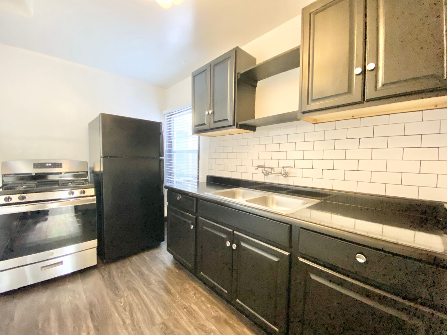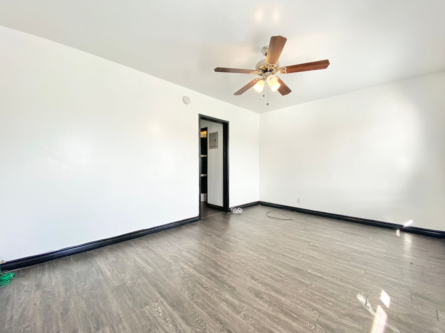 New dark laminate flooring throughout